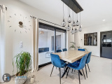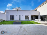 Menuiseries double vitrage Alu avec volets roulants solaires motorisés, chauffage au sol via pompe à chaleur Air/Eau, ballon d'eau chaude avec production instantanée, consommation électrique moyenne 120€/mois, fibre.