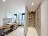 Chauffage au sol reversible (chaud/froid) via pompe à chaleur eau/eau + climatisation réversible à l'étage (consommation moyenne 180€/mois, menuiseries double vitrage Aluminium avec volets roulants motorisées, portail sectionnel motorisé avec visiophone, fibre, tout-à l'égout.