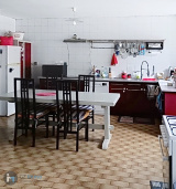 Cette maison comprend au rez-de-chaussée une pièce de vie de 85 m² (avec espace bar, séjour, salon), une cuisine séparée de 27 m² donnant sur une terrasse, un WC.