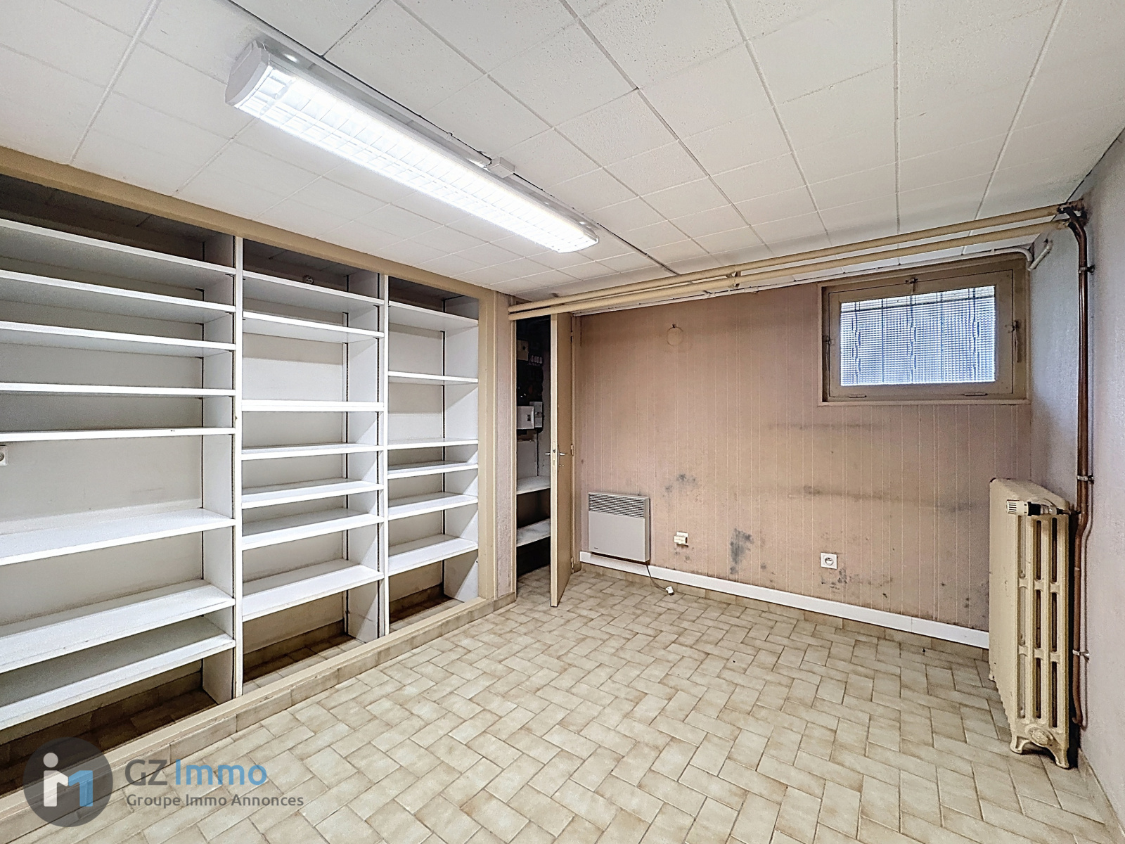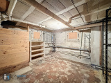 Sous-sol total comprenant un garage de 30 m², une pièce, un espace chaufferie, une cave.